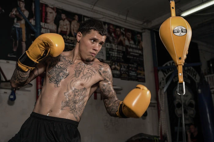 An astonishing double end bag with all the performance, style and quality elite athletes demand. Pro Mex boasts the most valiant, and amazing double end bags with every detail masterfully covered to offer you the highest professional training bag – top grade goatskin leather, triple nylon stitching and leather welted seams for the fastest action and truest rebounds, every time. Complete with two double-layer, rivet reinforced hanging loops, precision lacing and a butyl rubber inner bladder for all the speed, durability and performance elite athletes demand in their double end bag training. Comes complete with two industrial rubber double end bag cables with S-hooks for hanging. Authentic Mexican-style quality, craftsmanship and pride in every detail!