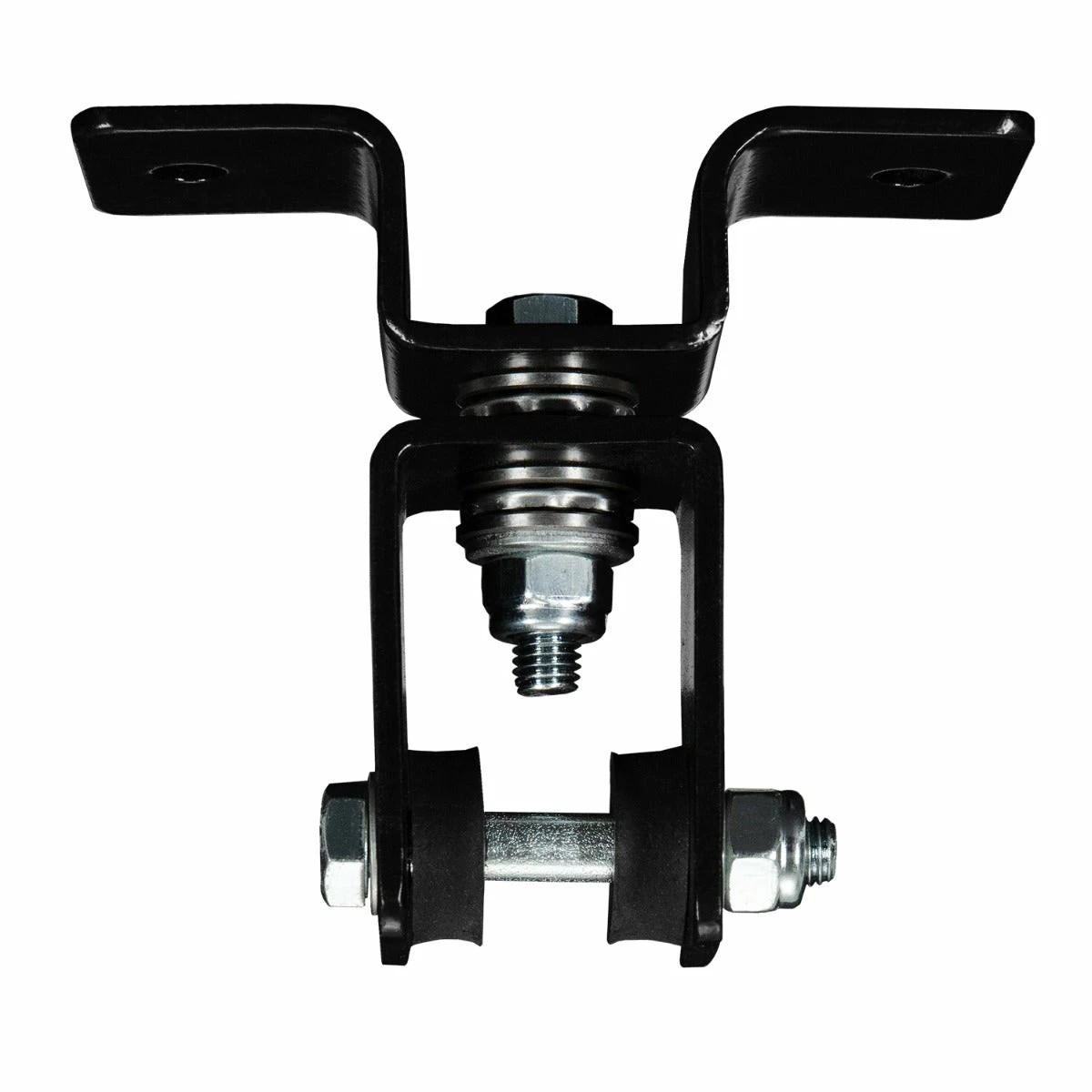 This industrial steel ceiling beam heavy bag hanger is forged from extra heavy gauge steel to deliver professional gym results for virtually any heavy bag demand. Twin precision bearings allow the hanger to swivel effortlessly, alleviating twisted chains and tangled hanging straps. The heavy duty steel hanging bolt includes two thick adjustable rubber stoppers to help keep the bag from moving back and forth along the top. Designed to fit home and commercial ceiling joists perfectly. Includes two 2.5” x 3/8” lag bolts and washers for attaching into wood ceiling joists. Holds heavy bags up to 250 lbs.